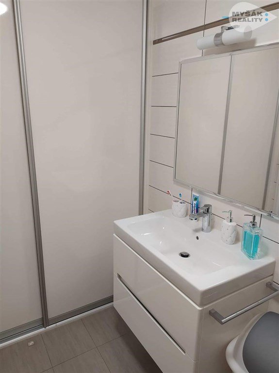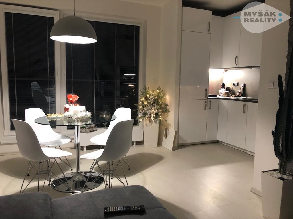 Byt - novostavba z roku 2018 - je ve velmi pěkném stavu viz. přiložené foto - plovoucí podlahy, plastová okna, koupelna se sprchovým koutem, elektrické předokenní rolety, klimatizace, vestavěné skříně, kuchyně komplet vybavená BEKO spotřebiči. Veškeré vybavení bytu realizováno na míru a je již započítáno v ceně.