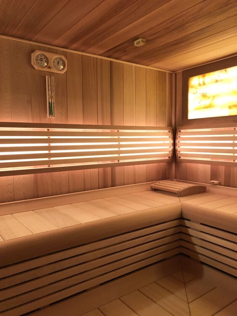 Spodní podlaží bytu nabízí zcela unikátní přidanou hodnotu v podobě soukromé wellness zóny. Nachází se zde profesionální sauna pro 6 osob se solným panelem, sprcha, samostatné WC, prádelna, úklidová místnost a sklad. Tento prostor lze zároveň flexibilně využít jako ateliér, domácí pracovnu či studio.