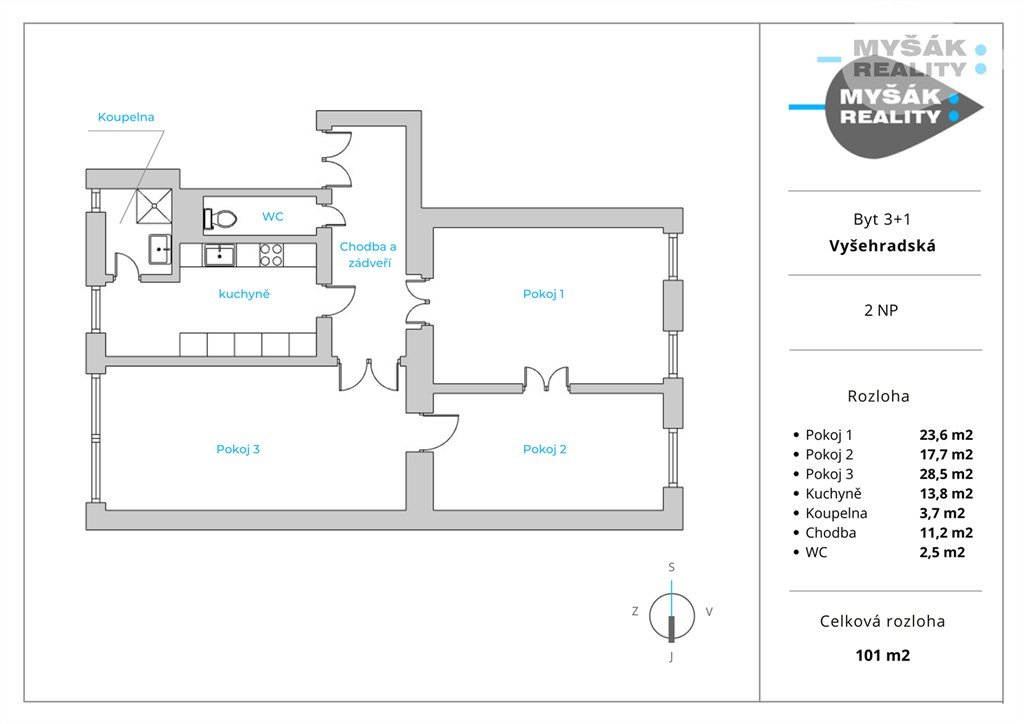 Byt se nachází v prvním patře domu bez výtahu a je koncipován jako 3+1 o ideální výměře 102m2. Je částečně zrekonstruovaný, s novým plynovým kotlem pro topení i ohřev vody. V koupelně s oknem je sprchový kout.