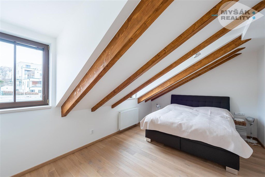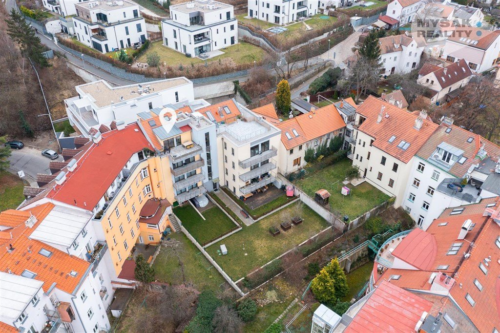 Bytový dům byl postavený před osmi lety, nachází v jednosměrné ulici a jeho podzemí je vyhrazeno garážím. K nabízené bytové jednotce patří hned dvě garážová stání vedle sebe. Bytu je vyhrazeno celé horní patro, nebudete s nikým sdílet zádveří, chodbu a ani výtah, jelikož do vašeho patra se lze výtahem dostat jen díky klíči, který mají pouze majitelé. Tím je zaručeno maximální možné soukromí.