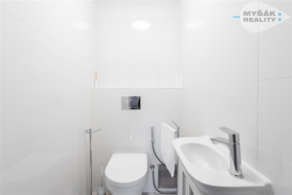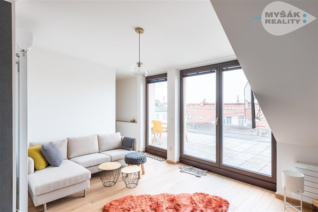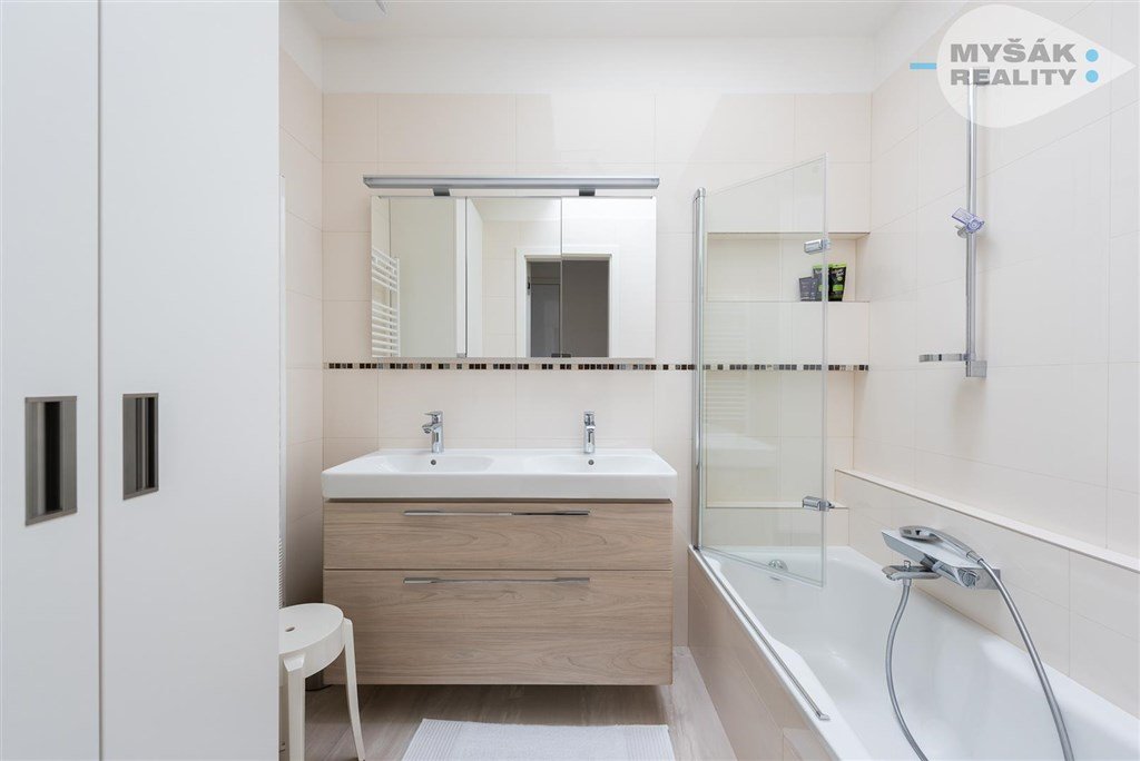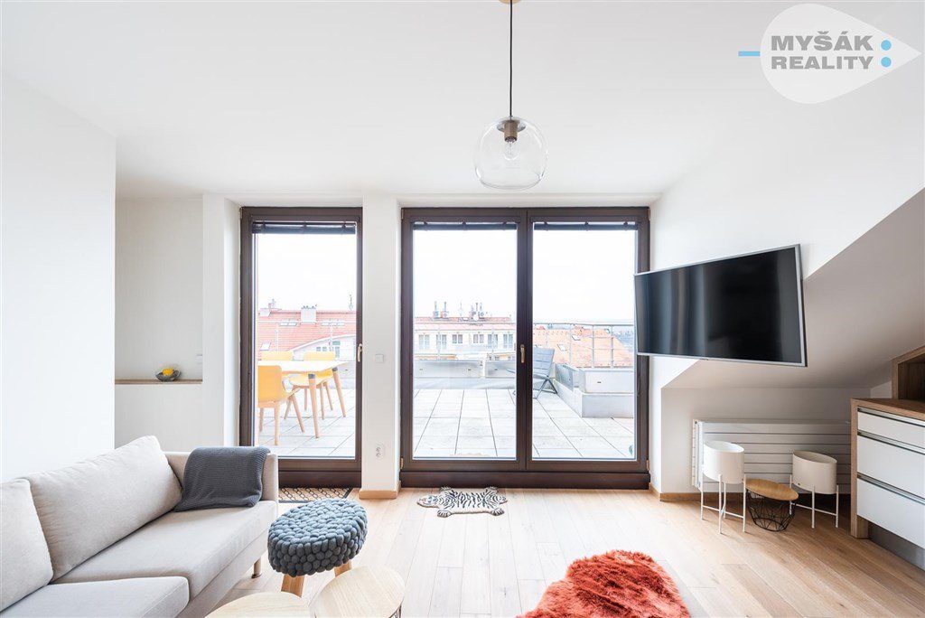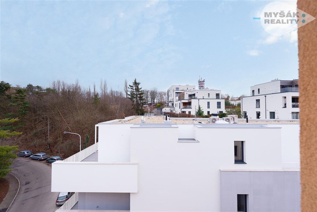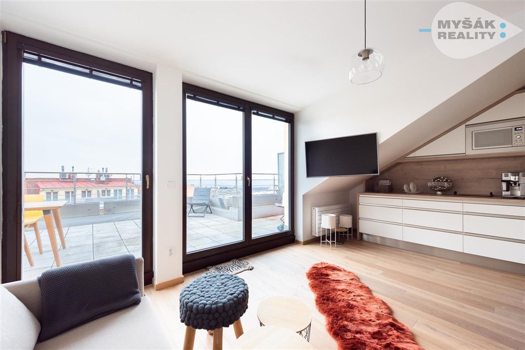 Velkolepým finále celého bytu jsou poslední dveře, ty vedou na terasu s posezením. Terasa s velkorysou plochou 24m2 směřuje do vnitrobloku a je z ní výhled na starý Břevnov, Dlabačov, Bohnice, Troju a trojský zámek. Bude skvělým místem pro soukromá setkání s přáteli, ranní jógu, večerní skleničku a víkendové dlouhé obědy s blízkými.