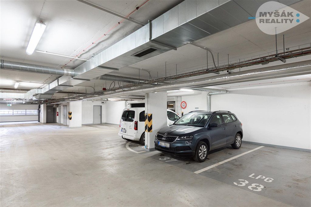Teplo a teplá voda jsou zajištěny vlastní kotelnou v domě, dřevěná euro okna, dřevěné podlahy z amerického ořechu, kvalitní interiérové dveře. Velkorysé úložné prostory nabízí prostorná předsíň se skříní a velkým výklenkem např. pro budoucí šatnu či technickou místnost. K bytu patří dvě sklepní kóje (po 4,5 m2) a jedno garážová stání. Měsíční náklady činní 4.900 Kč.