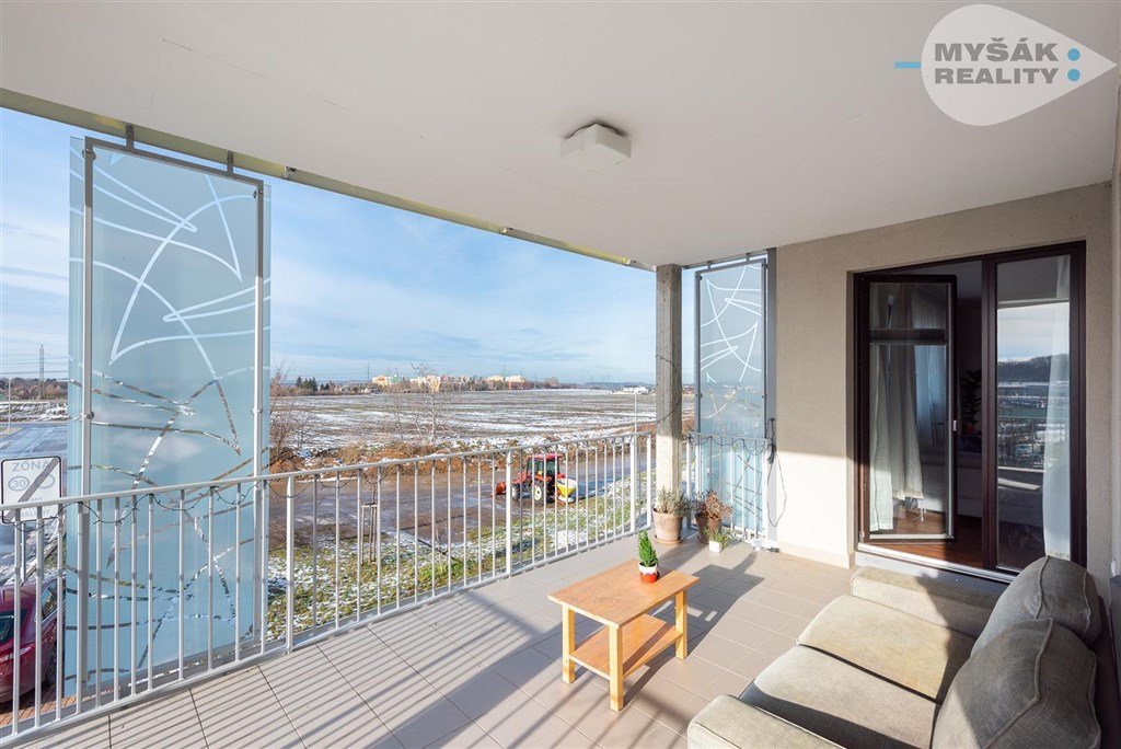 Terasa má úžasných 24 m2 a vede kolem části bytu do tvaru L. Užší část má jižní orientaci, širší část s dostatkem prostoru pro posezení a relaxaci, nabízí volný západní výhled s dostatkem soukromí. Dle majitelů se zde výborně daří bylinkám, zejména mátě. Stačí si tedy umíchat mojito, natáhnout se a kochat se krásnými západy slunce nad Drahaňským přírodním parkem.