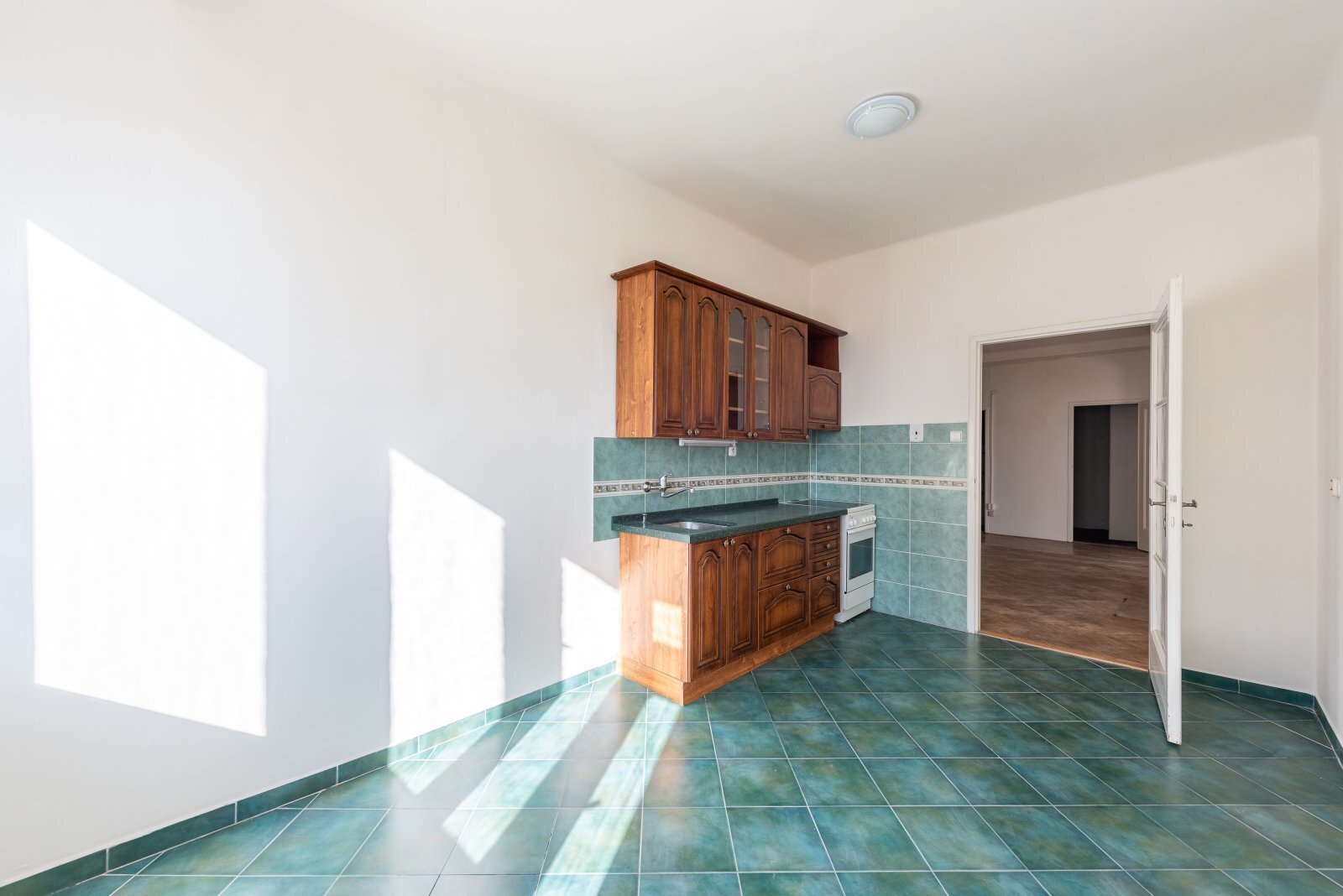 Hned za vstupními dveřmi se nachází šatní skříň, další úložné prostory jsou k dispozici ve dvou komorách a k bytu náleží i sklep. Z chodby se dostanete do haly, která přechází v kuchyň (14 m²) s jídelnou, kde si s radostí dáte snídani poté, co přijdete z trhu s čerstvými květinami, kávou a croissanty.