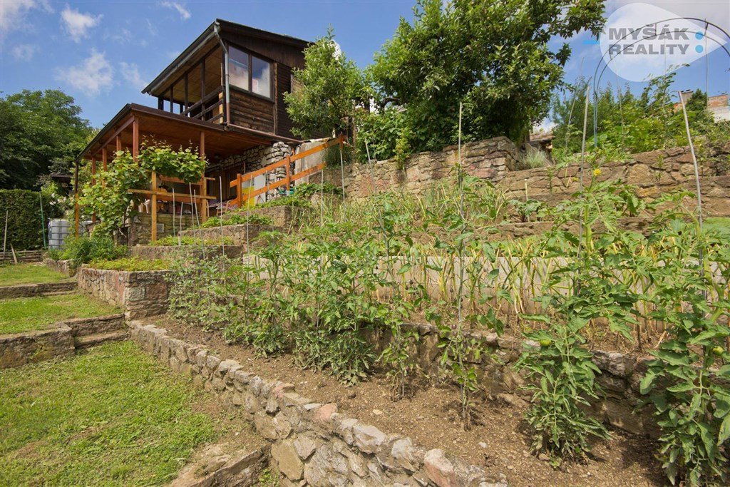 Tahle chatička má opravdu neuvěřitelnou zahradu. V nádherně zpracovaném svahu se můžete potěšit ovocnými stromy a keři, využít mnoho visutých záhonků i skleník, každý kout zahrady je léta opečovávaný a vymazlený k dokonalosti. Mezi chatami nečekejte žádné moderní ploty, jen udržované trávníkové cestičky, jaké si možná pamatujete z původních chatařských oblastí. Celková velikost pozemku je 356m2 a až vás omrzí, máte k prozkoumávání celých 128km2 Českého krasu. Nejblíže to budete mít do oblíbených Koněpruských jeskyní a Velkolomu Čertovy schody. A to je opravdu jen začátek. Jak pravil doktor Skružný: „Alpy tě ohromí, ale tohle? To tě dojme! A jestli máš srdce, tak to musíš cítit. To není země, to je zahrádka!“