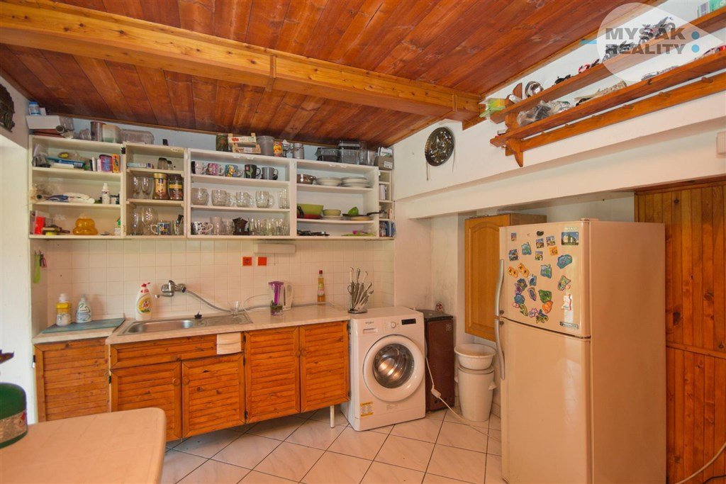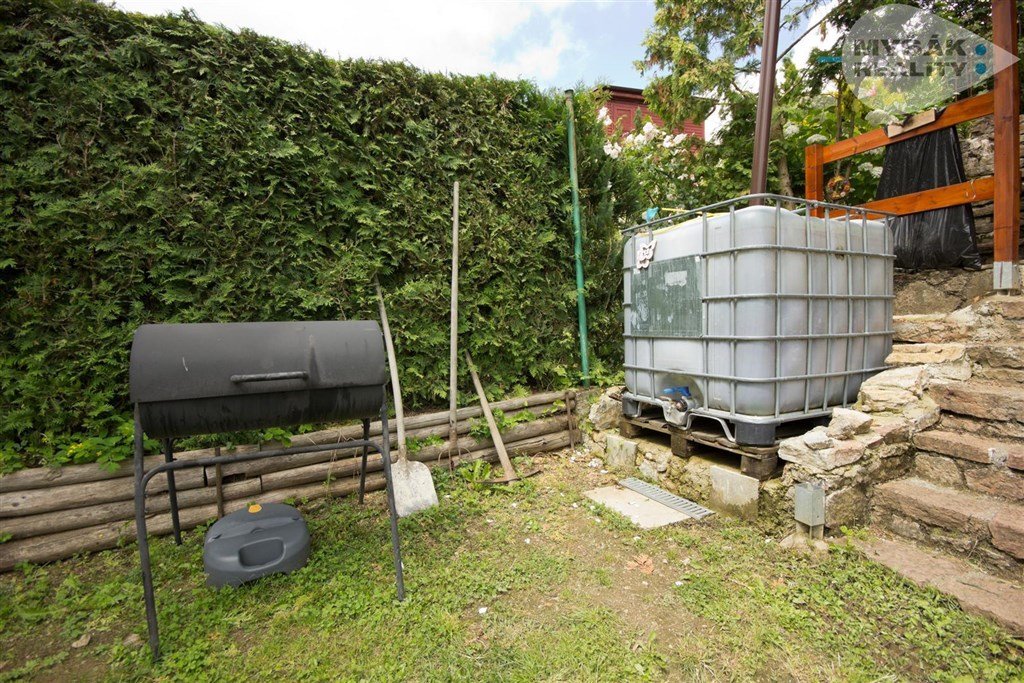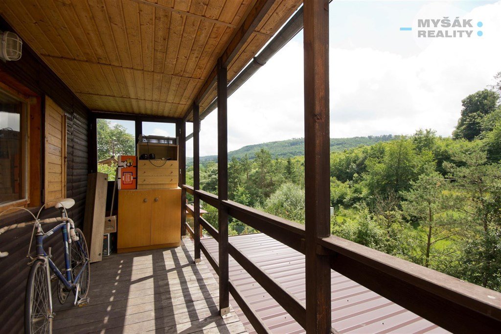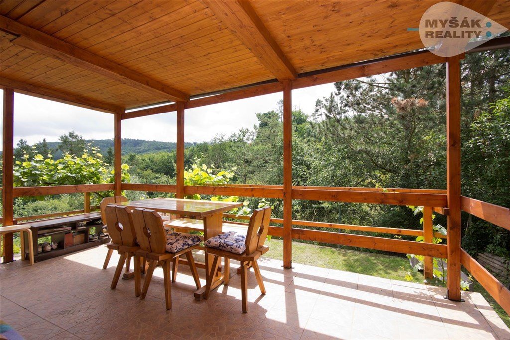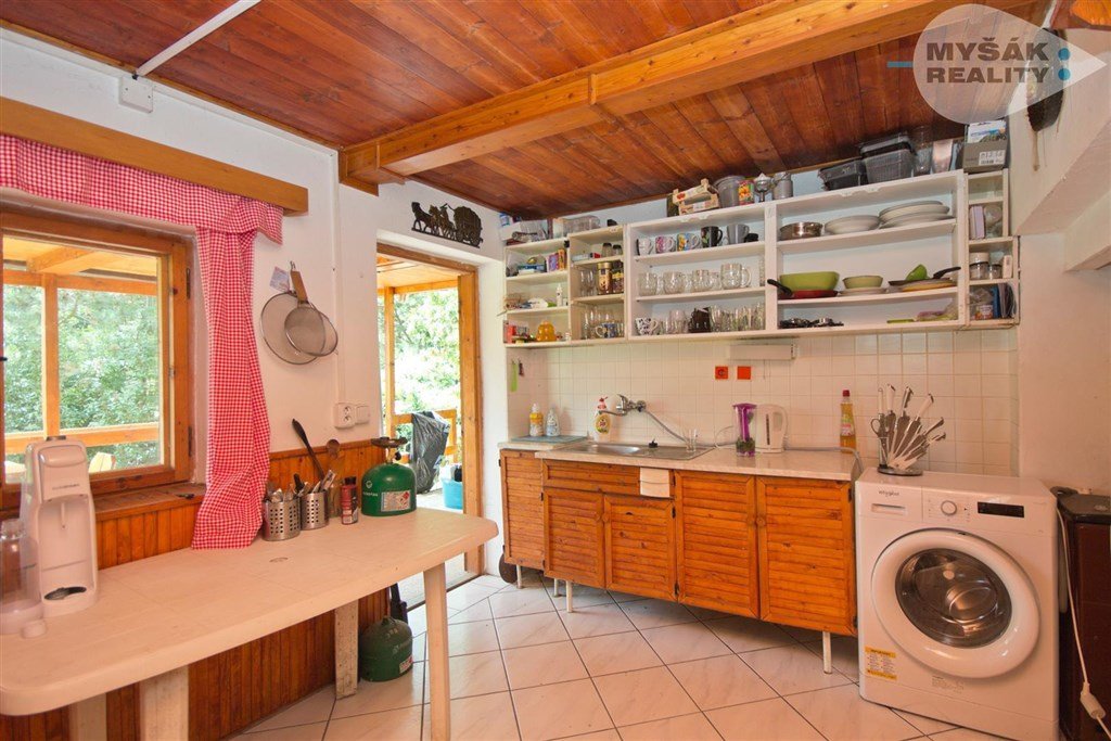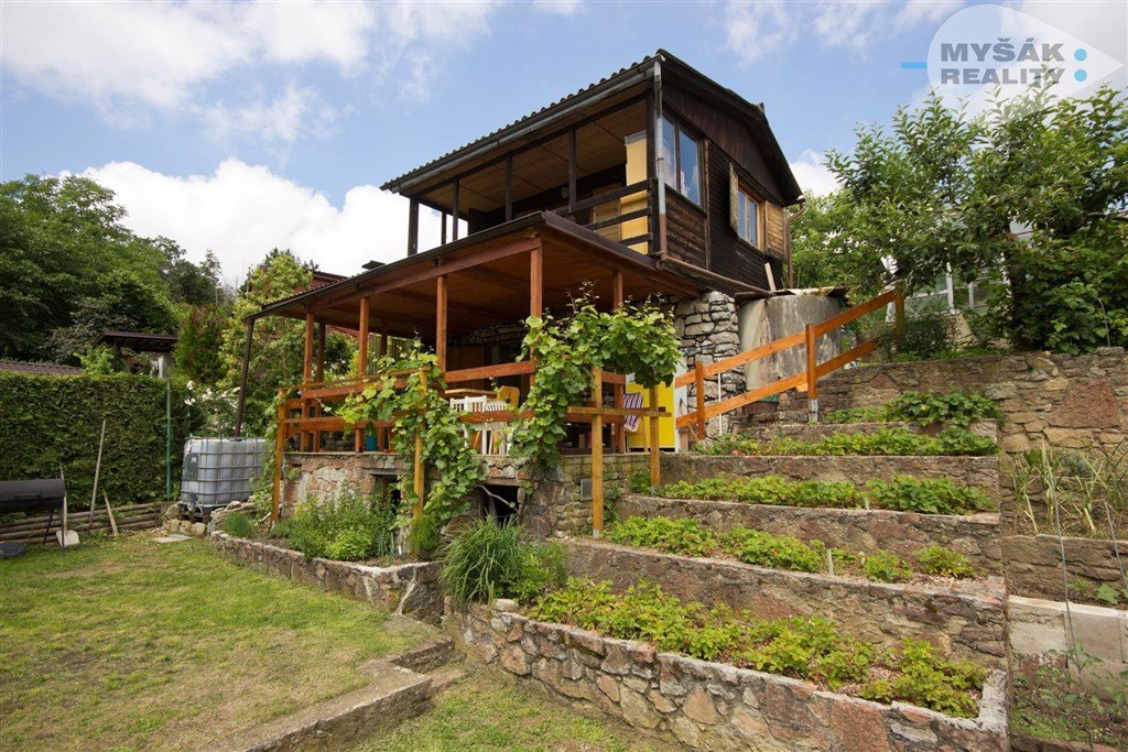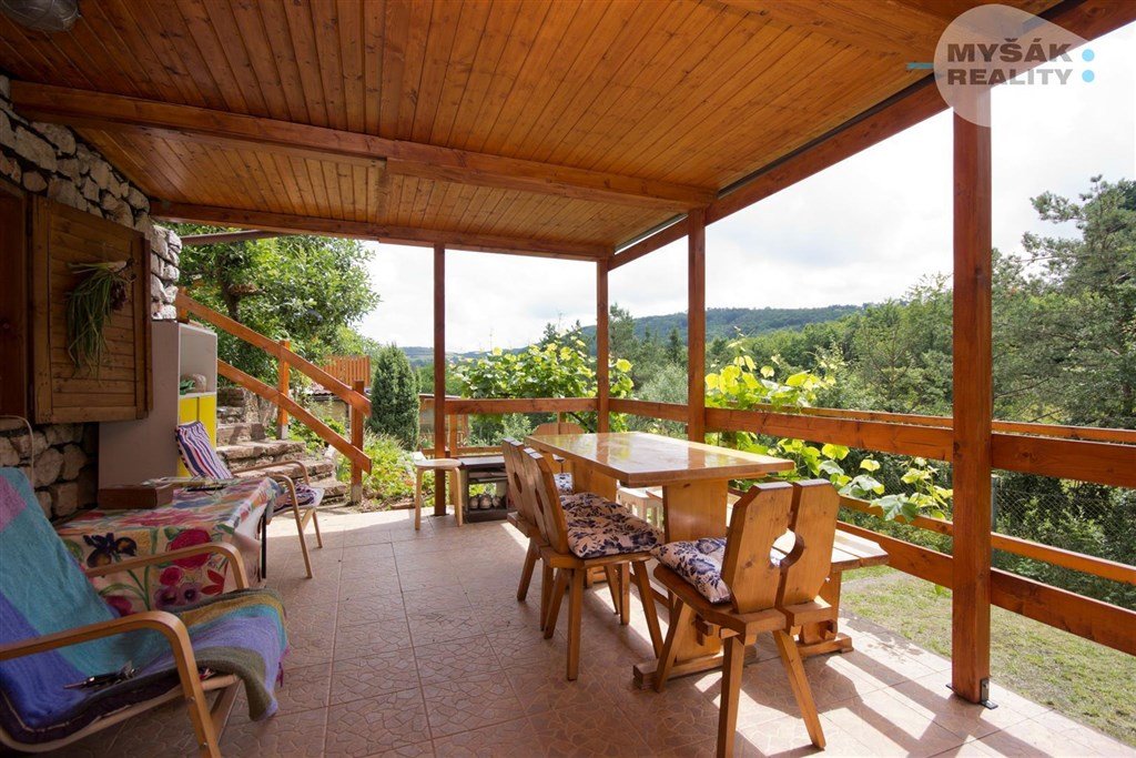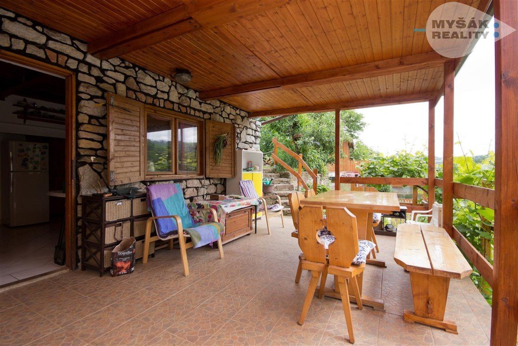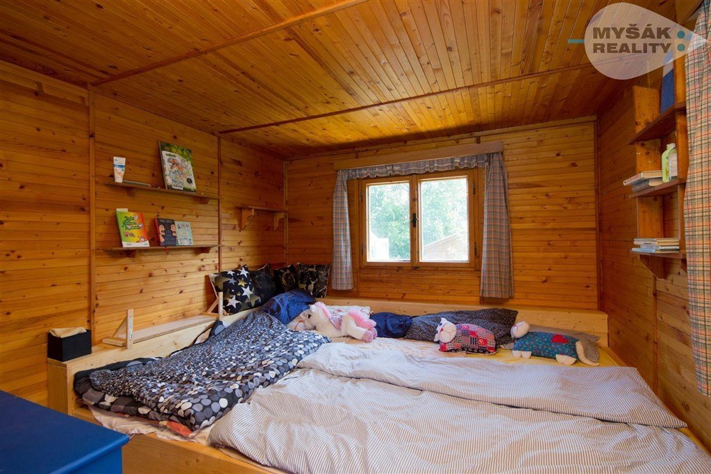 V příjemně svažité zahradě leží chata, klasická dřevostavba s fortelnou kamennou podezdívkou. V její horní části je prostorná ložnice s terasou a dřevěnými skříněmi, ve spodní části chaty najdete velkou kuchyň, koupelnu s toaletou, bojlerem, umyvadlem a sprchovou hlavicí. Z kuchyně i koupelny vyjdete přímo na krásnou, novou verandu, kde budete určitě trávit všechna svá rána u kávy a večery u vína a piva s kytarou, ať budou vedra, nebo letní bouřky. Chata má i svůj sklep.