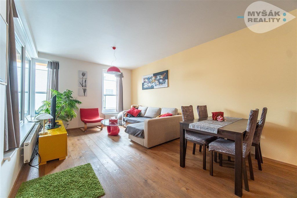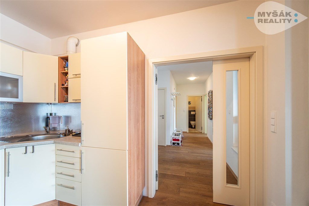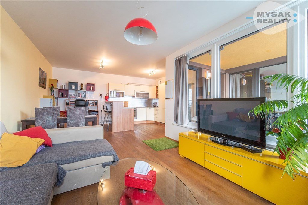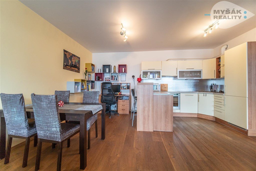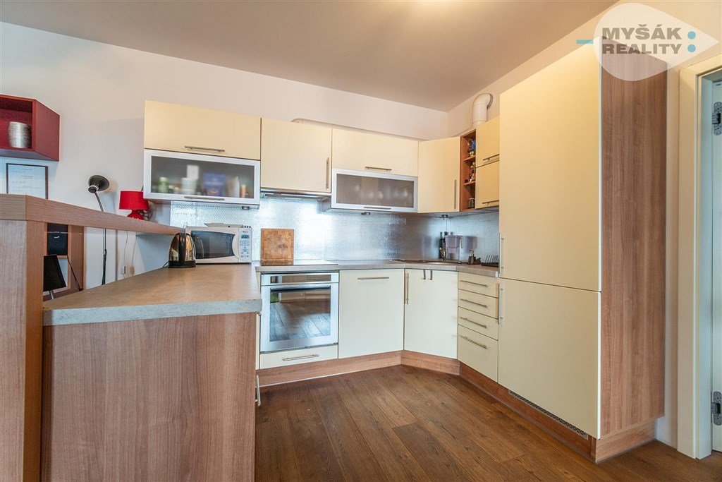 Vnitřní členění bytu je přesně jak má být, chytře řešené, účelné a dotažené do detailu. Srdcem bytu je 32 m2 velký obývací pokoj, s plně vybavenou kuchyňskou linkou, do níž jsou zabudovány spotřebiče (sklokeramická varná deska, sporák, myčka nádobí, lednička s mrazákem a výkonná digestoř). Kuchyň má dostatečnou pracovní plochu. Obytné části pokoje dodávají dostatek vzdušnosti a světla velká okna vedoucí na terasu.