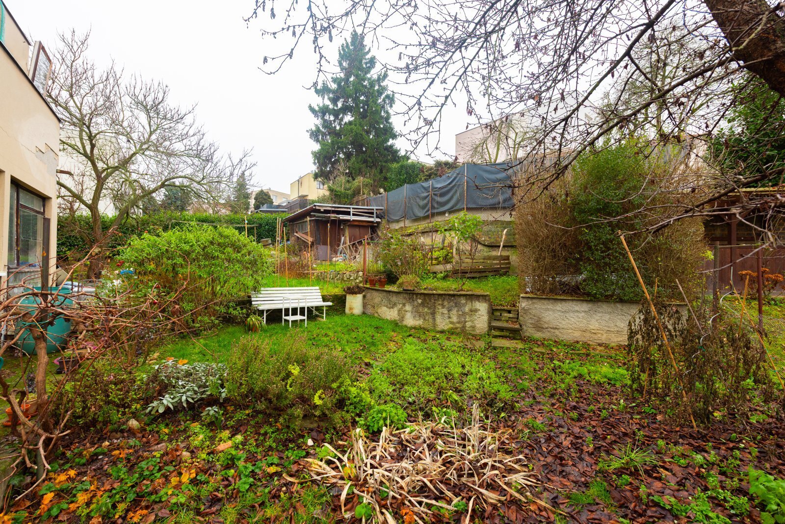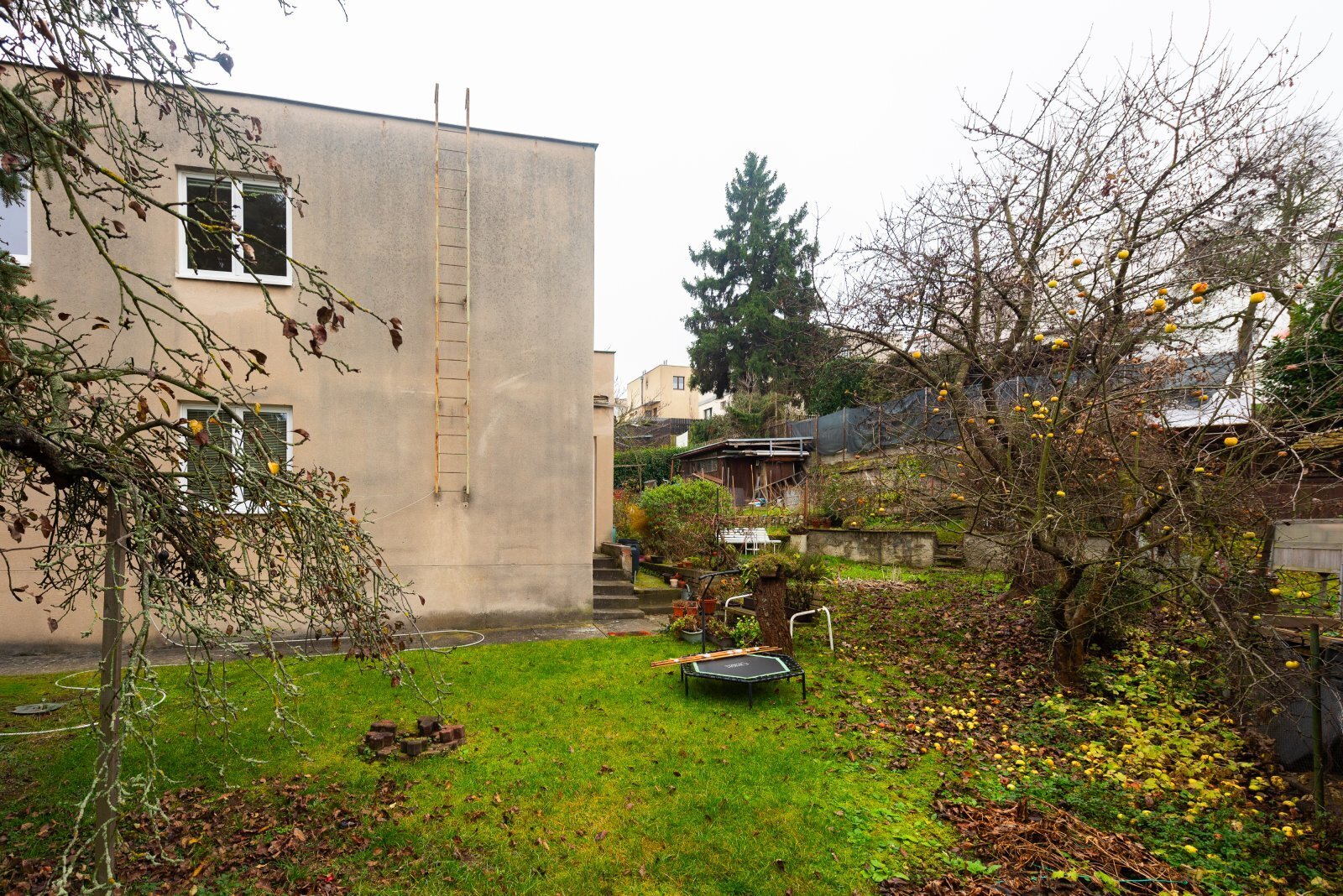 Dům je podsklepený a součástí 1. nadzemního podlaží je i integrovaná garáž. Kromě ní se na pozemku nachází ještě samostatná stavba, původně garáž, kterou lze využít jako dílnu, sklad nebo zahradní zázemí. Její rovná střecha přímo vybízí k přeměně na soukromou terasu s výhledem do zeleně.