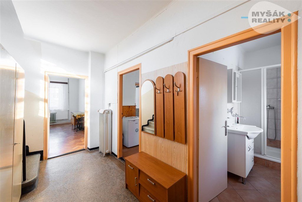 Obytné přízemí má verandu a velkou vstupní halu, všude je dostatek prostoru i světla. Dům má nová okna a ve všech jsou natažené žaluzie.