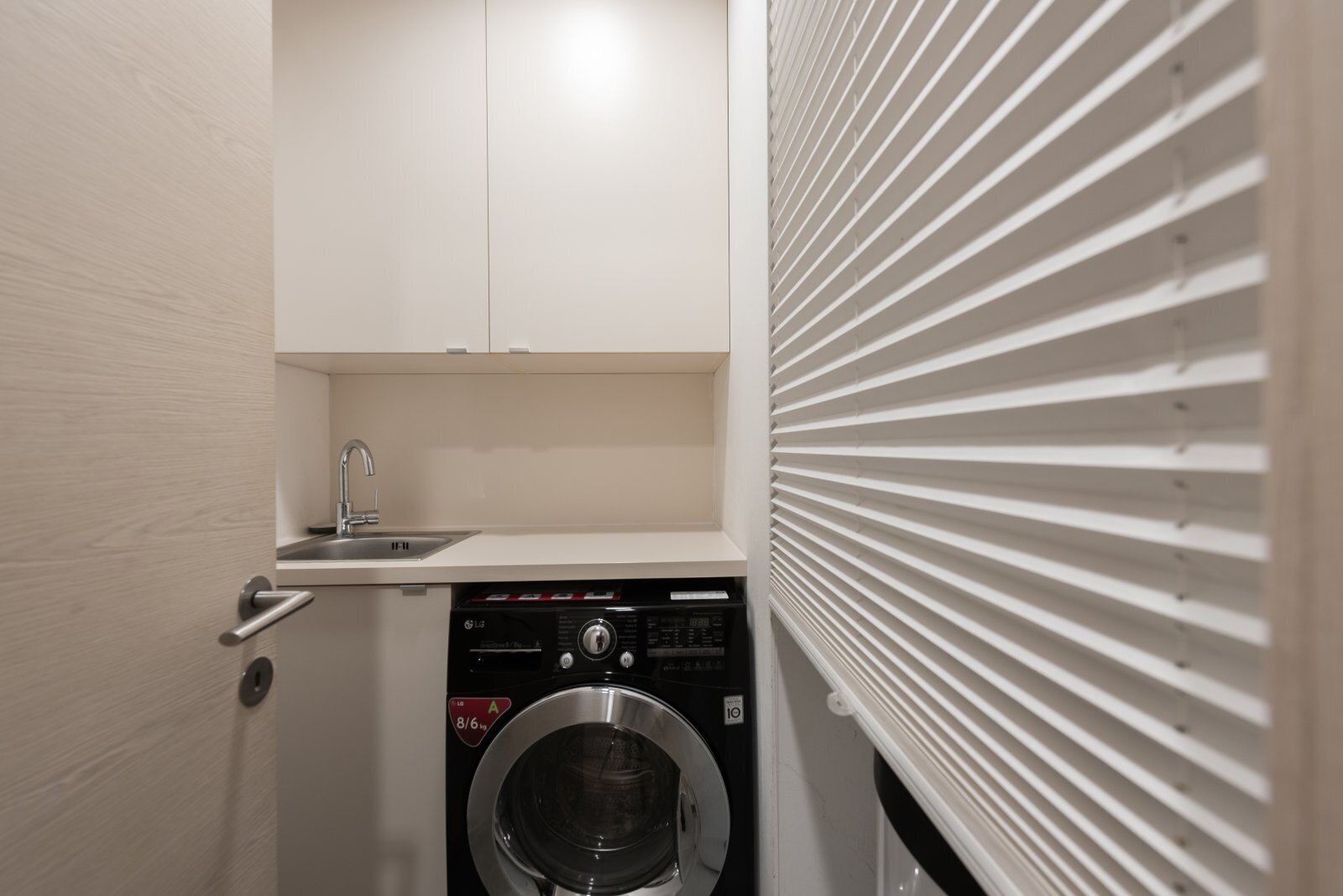 Dřevěné podlahy, vysoké dveře, designové tapety, elegantní závěsy a velká panoramatická okna s jižní orientací jsou už jen třešničkou na dortu. Malá terasa, na kterou se vstupuje z obou místností, nabízí dostatek soukromí, místa na pěstování bylinek a máte připravené již posezení s volným výhledem na smíchovské kopce.